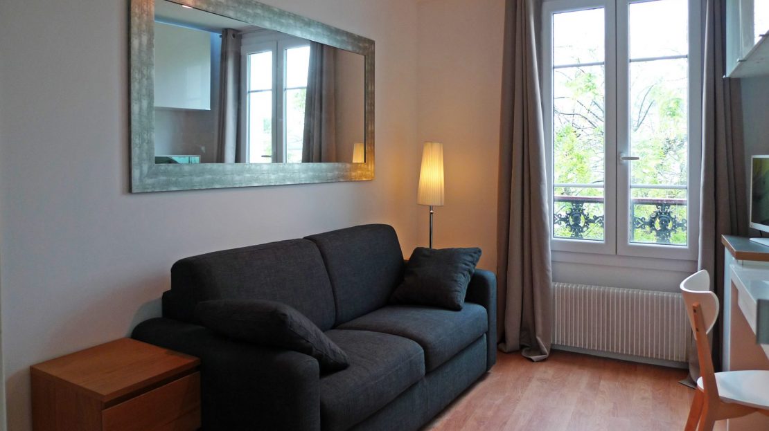 Place du Docteur Félix Lobligeois, in the very sought after Batignolles neighborhood. Studio on the 4th with a south facing window overlooking trees, very bright and quiet. Full sized POLTRONA sofa bed, large storage space with closet, plasma TV and internet (WIFI). Fully equipped kitchen: bar, refrigerator, microwave, ceramic hotplates, washer dryer, dishwasher. Beautiful bathroom with Italian style shower, sink and storage space, heated towel rack. Central heating from the building. Lively neighborhood close to shops and Velib and Autolib stations close by.